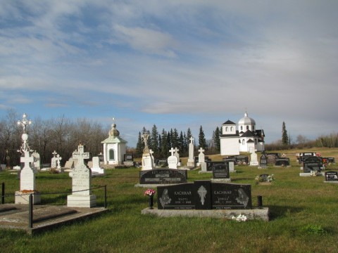 Notes: Pictures were taken Oct 19, 2010. Church on site is the Holy Ascension Ukranian Catholic Church. Headstones are east facing.